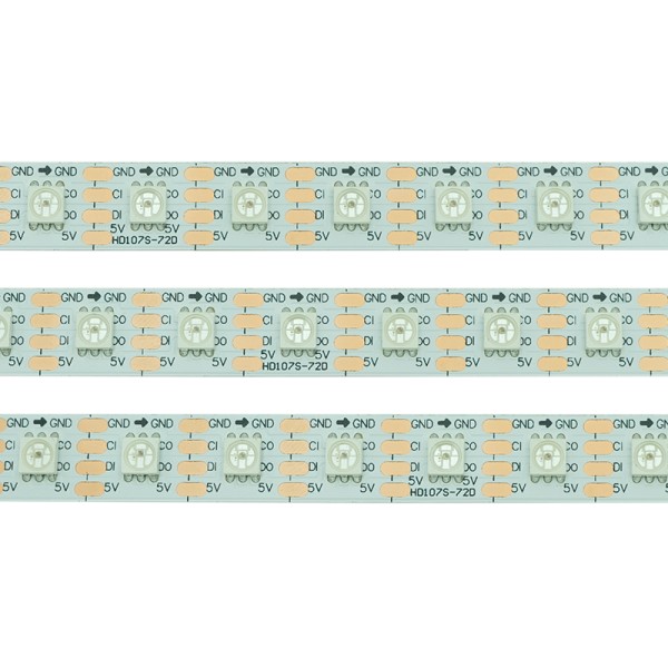 | RD-107S72-5VB20 | 12MM | HD107S | 72 Pixel/m | 27KHz | RGB | DC5V | 21.6W | IP20/IP65/IP67/IP68 |