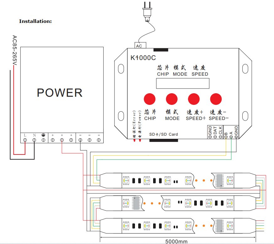 แผนภาพการเชื่อมต่อแถบ LED: